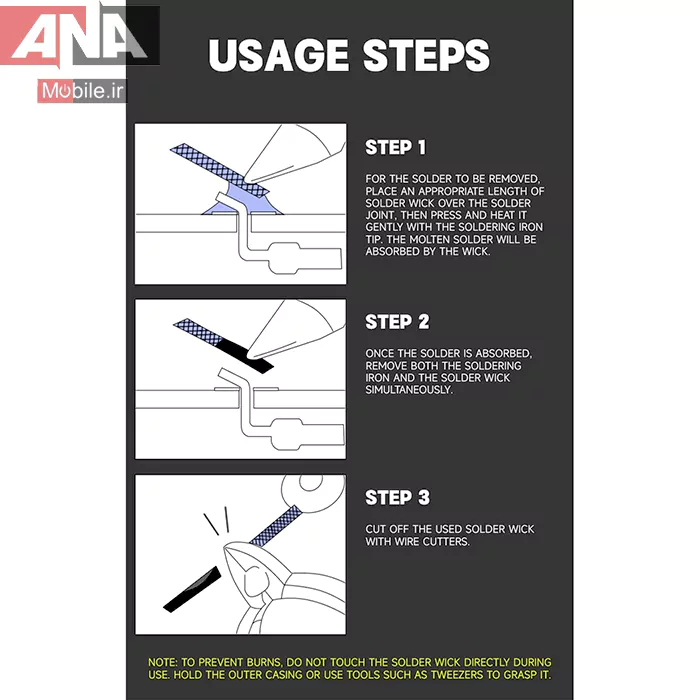 - نوع ابزار: سیم قلعکش (Desoldering Wick)