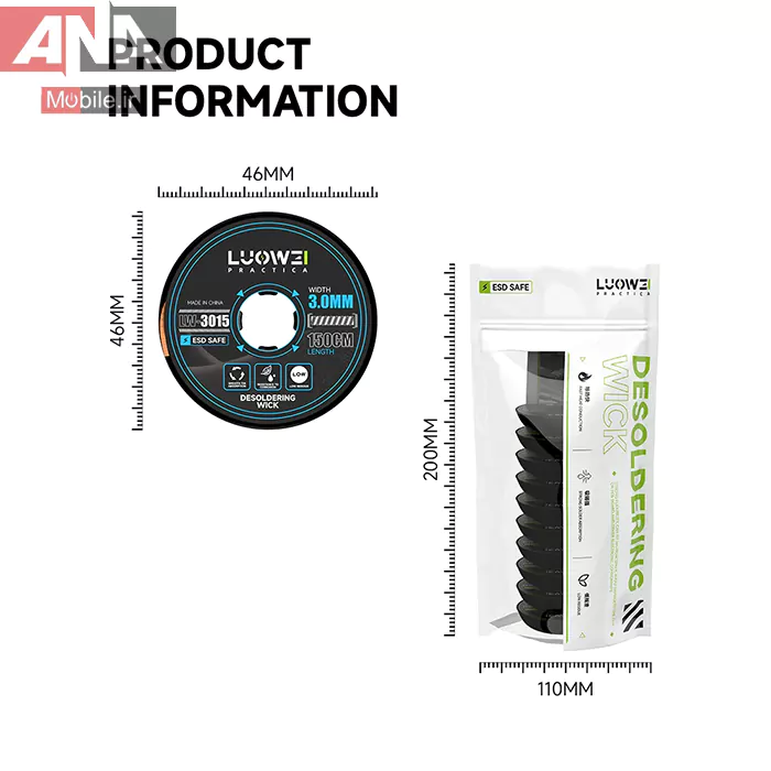 سیم قلعکش LUOWEI LW‑3015 MAX یک ابزار حرفهای و دقیق برای تعمیرات بردهای الکترونیکی، موبایل، لپتاپ و تجهیزات SMD است. این محصول از مس با خلوص بالا ساخته شده و با استفاده از تکنولوژی بافت پیشرفته، توانایی جذب سریع و کامل قلع مذاب را بدون آسیب به پدها و مسیرهای برد فراهم میکند.
