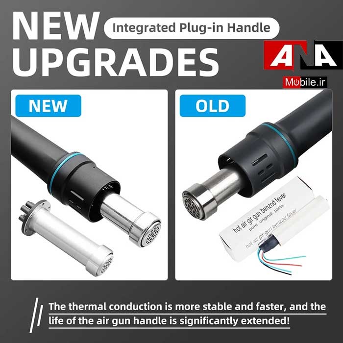 در تصویر محصول می توانید مشاهده کنید که در کنار دستگاه قسمتی برای نازل های هوای گرم هیتر در نظر گرفته شده است که بسیار کاربردی و قابل توجه است.