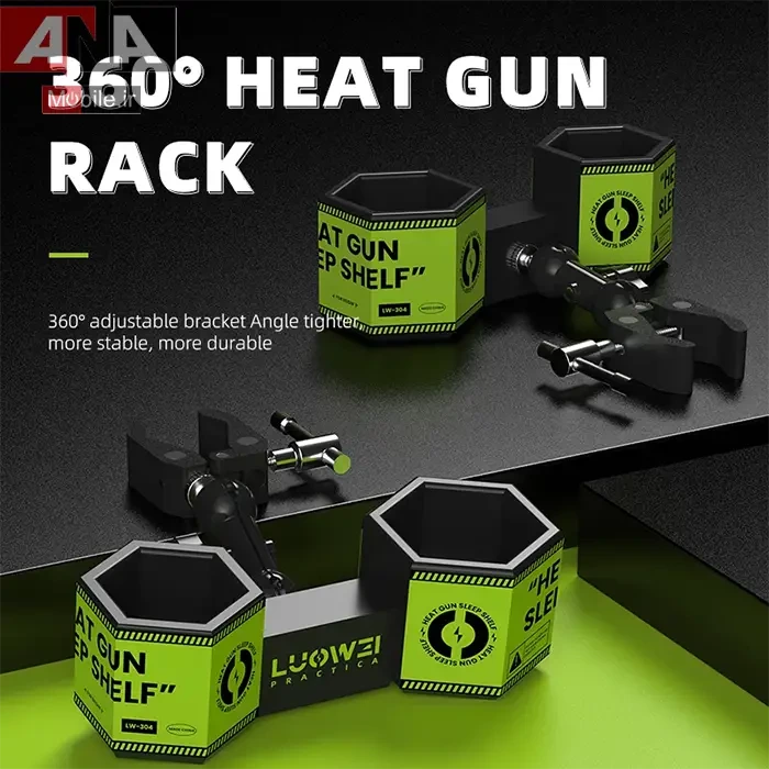 پایه چرخشی هیتر LUOWEI LW-304 – یک ابزار نگهدارنده مناسب دسته هیتر و هویه است که به تعمیرکاران موبایل این امکان را میدهد که دسته هیتر و هویه خود را در حین کار به طور ایمن نگه دارند. یک نگهدارنده دسته هیتر مناسب برای انواع هیترهای تعمیرات موبایل است. برای طیف گستردهای از زوایای تنظیم طراحی شده است و دارای قابلیت خوابیده شدن است. با هیترهای ICK 2008 و 861DW سازگار است. این محصول از آلومینیوم و پلاستیک ABS ساخته شده است. سبک و بادوام است. دارای یک پایه چرخان 360 درجهای است که امکان تنظیم زاویه را فراهم میکند.
