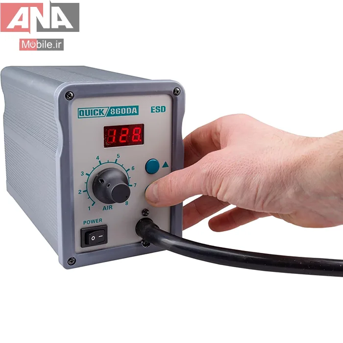 دستگاه لحیم کاری هوای گرم QUICK 860DA یک ابزار حرفهای و دقیق برای تعمیرات تخصصی بردهای الکترونیکی، موبایل، لپتاپ و قطعات SMD است. این دستگاه با توان 120 وات و قابلیت تنظیم دیجیتالی دما در بازه 100 تا 450 درجه سانتیگراد، امکان انجام لحیمکاری و جداسازی قطعات حساس را با دقت و ایمنی بالا فراهم میکند.