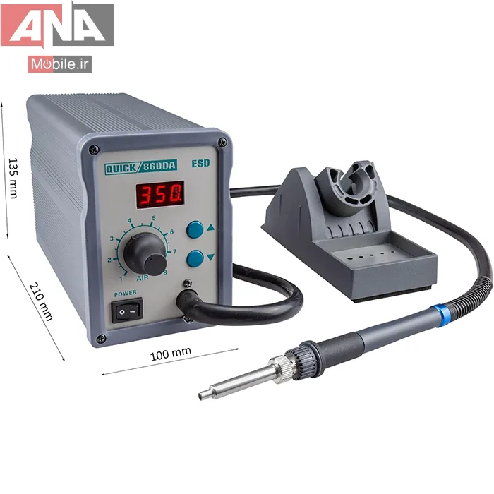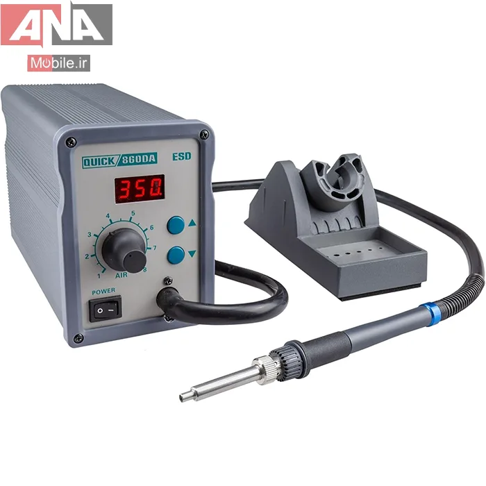 قابلیت کالیبراسیون دما، نمایشگر دیجیتال و طراحی ارگونومیک دسته، QUICK 860DA را به یکی از محبوبترین دستگاههای لحیم کاری SMD در بین تعمیرکاران حرفهای تبدیل کرده است.