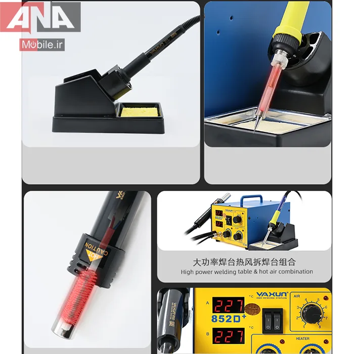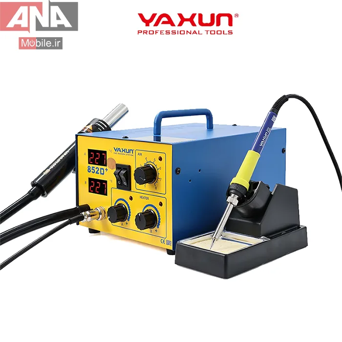 دستگاه هیتر و هویه Yaxun YX‑852D+ / PLUS یک ابزار کارآمد و حرفهای برای کلیه نیازهای تعمیرات الکترونیک، بهویژه در زمینه بردهای SMD و BGA است. این مدل ارتقاء یافته از برند خوشنام Yaxun، با ترکیب یک هیتر هوای گرم قدرتمند و یک هویه لحیمکاری دقیق، پاسخگوی نیازهای تعمیرکاران موبایل، لپتاپ و سایر دستگاههای الکترونیکی میباشد.